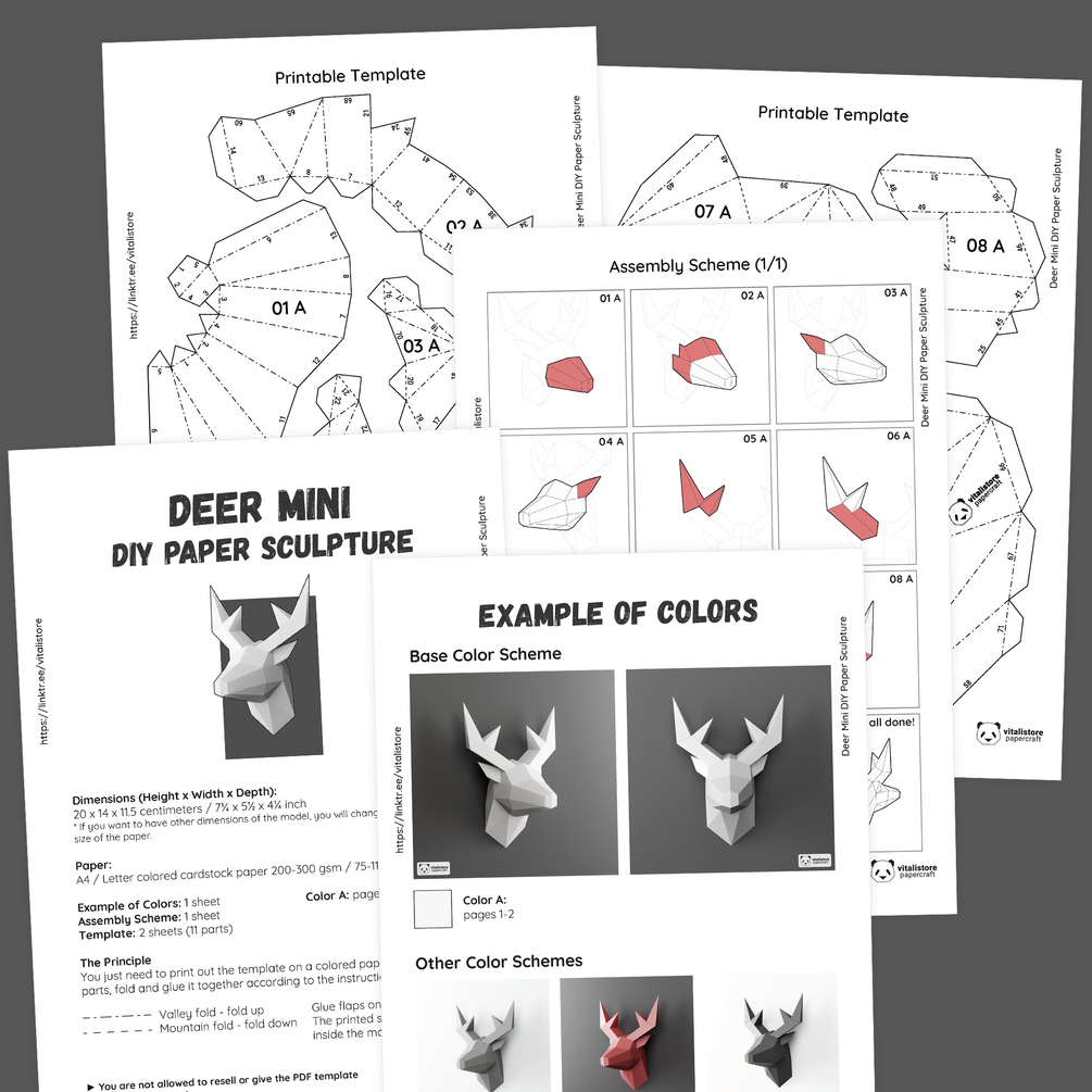 The perfect paper sculpture of Deer Mini Papercraft will be the best wall art object in your room. Also, it will be an extraordinary gift for a party or birthday.