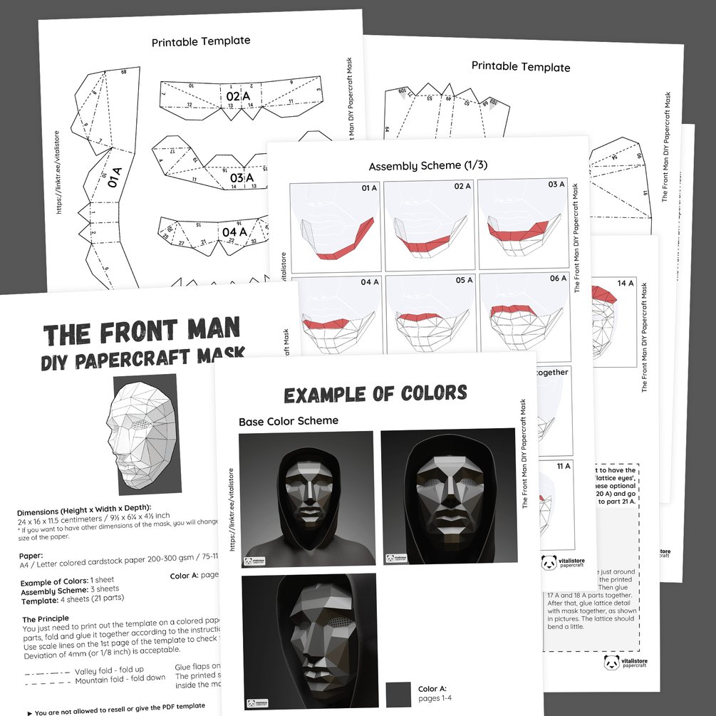 The perfect papercraft mask of The Front Man will be the best accessory for a party. Also, it will be an extraordinary gift for any party or birthday.